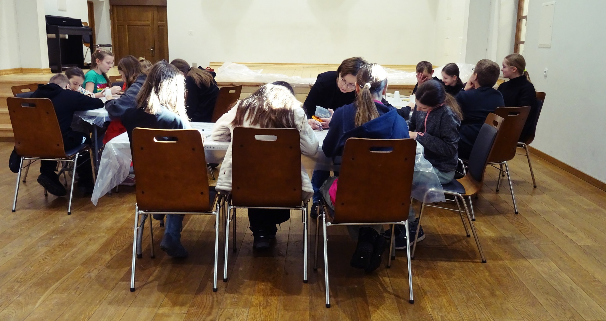 Miłośnicy muzyki rozwijali swoje talenty podczas warsztatów wokalnych prowadzonych przez Wiktorię Kozielec. W programie nie zabrakło także bajkowego kina z filmami animowanymi, gier planszowych integrujących uczestników oraz zajęć plastycznych, podczas których dzieci tworzyły papierowe origami.